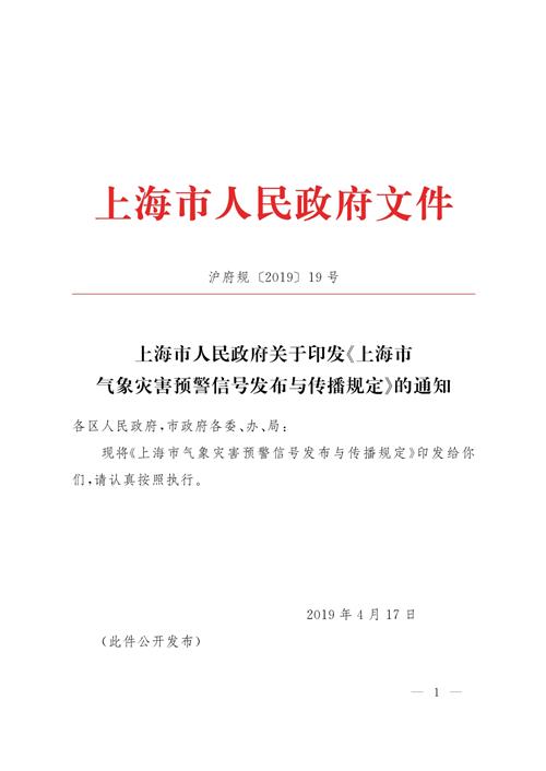 上海市人民政府關(guān)于印發(fā)《上海市氣象災(zāi)害預(yù)警信號(hào)發(fā)布與傳播規(guī)定》的通知