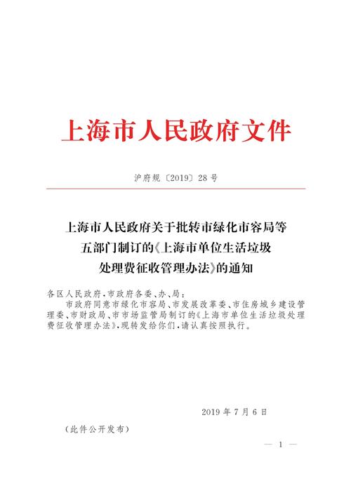 市政府同意市綠化市容局、市發(fā)展改革委、市住房城鄉(xiāng)建設(shè)管理委、市財(cái)政局、市市場監(jiān)管局制訂的《上海市單位生活垃圾處理費(fèi)征收管理辦法》,現(xiàn)轉(zhuǎn)發(fā)給你們,請認(rèn)真按照執(zhí)行。