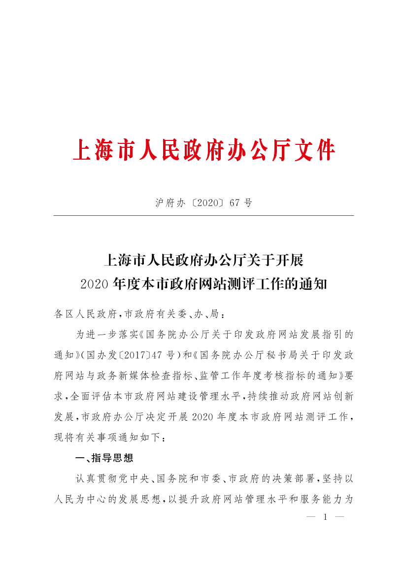上海市人民政府辦公廳關(guān)于開展2020年度本市政府網(wǎng)站測(cè)評(píng)工作的通知