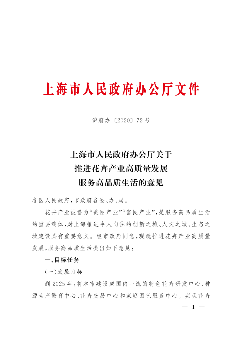 上海市人民政府辦公廳關(guān)于推進花卉產(chǎn)業(yè)高質(zhì)量發(fā)展服務(wù)高品質(zhì)生活的意見