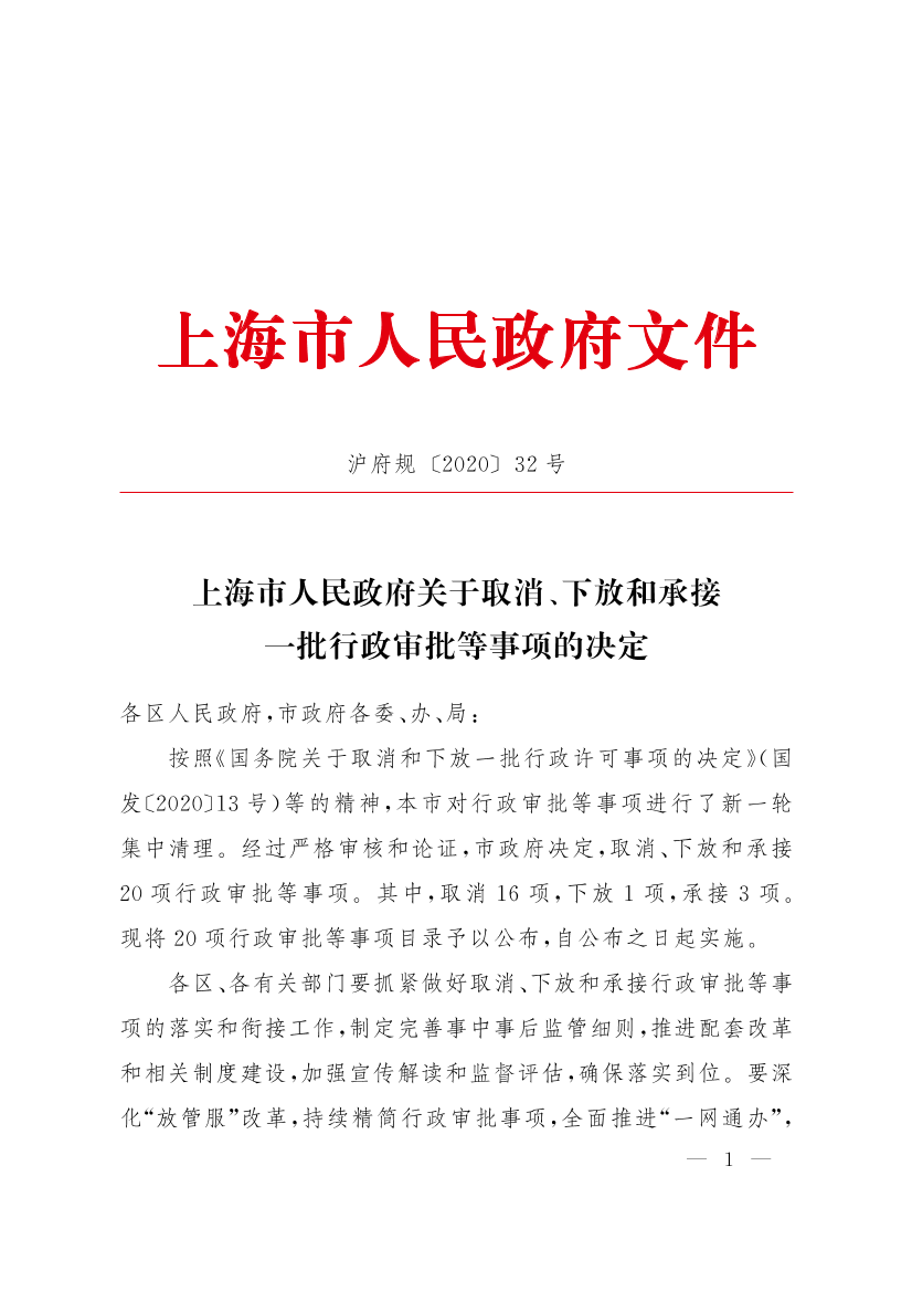 滬府規(guī)〔2020〕32號