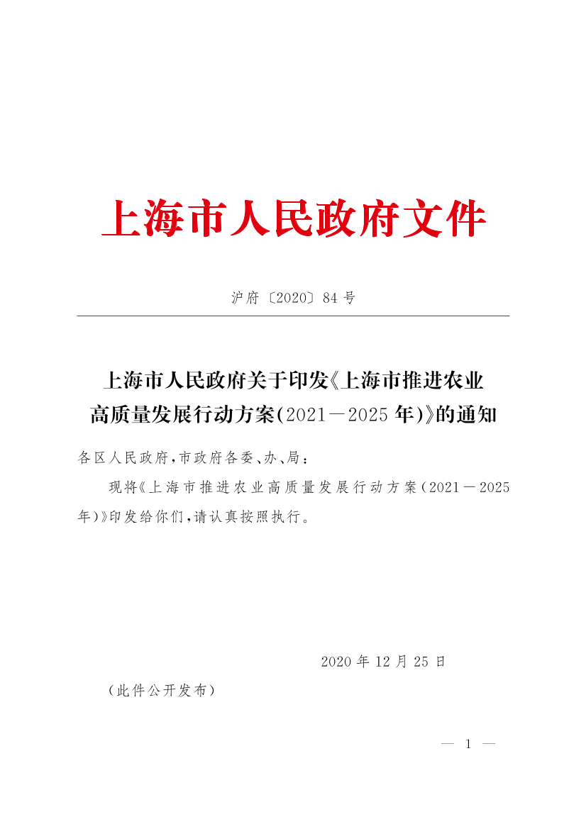 ??上海市人民政府關(guān)于印發(fā)《上海市推進(jìn)農(nóng)業(yè)高質(zhì)量發(fā)展行動方案(2021-2025年)》的通知