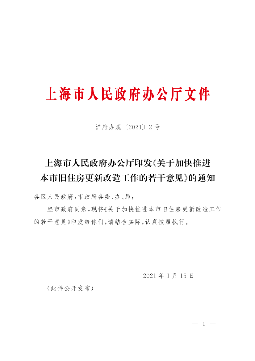 上海市人民政府辦公廳印發(fā)《關(guān)于加快推進(jìn)本市舊住房更新改造工作的若干意見(jiàn)》的通知