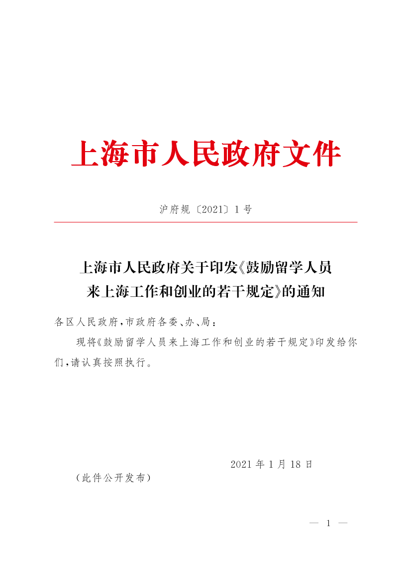 滬府規(guī)〔2021〕1號