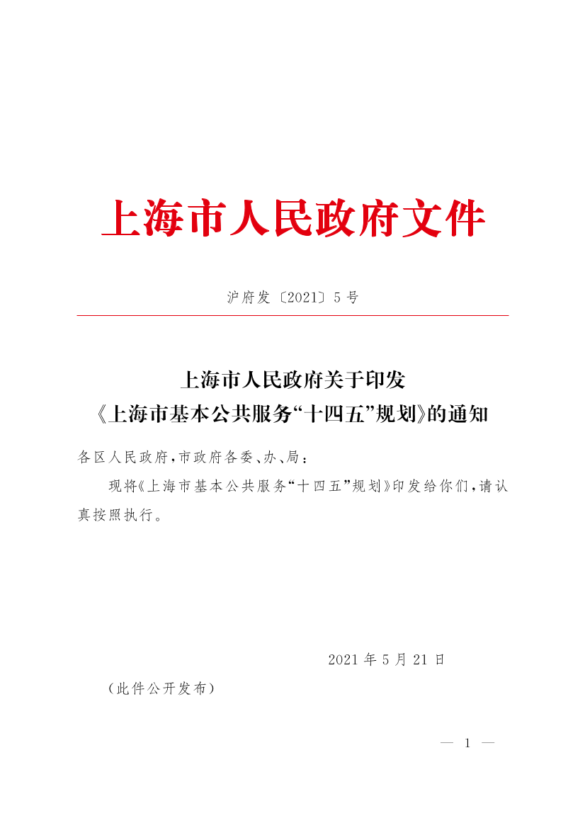 上海市人民政府關(guān)于印發(fā)《上海市基本公共服務(wù)“十四五”規(guī)劃》的通知