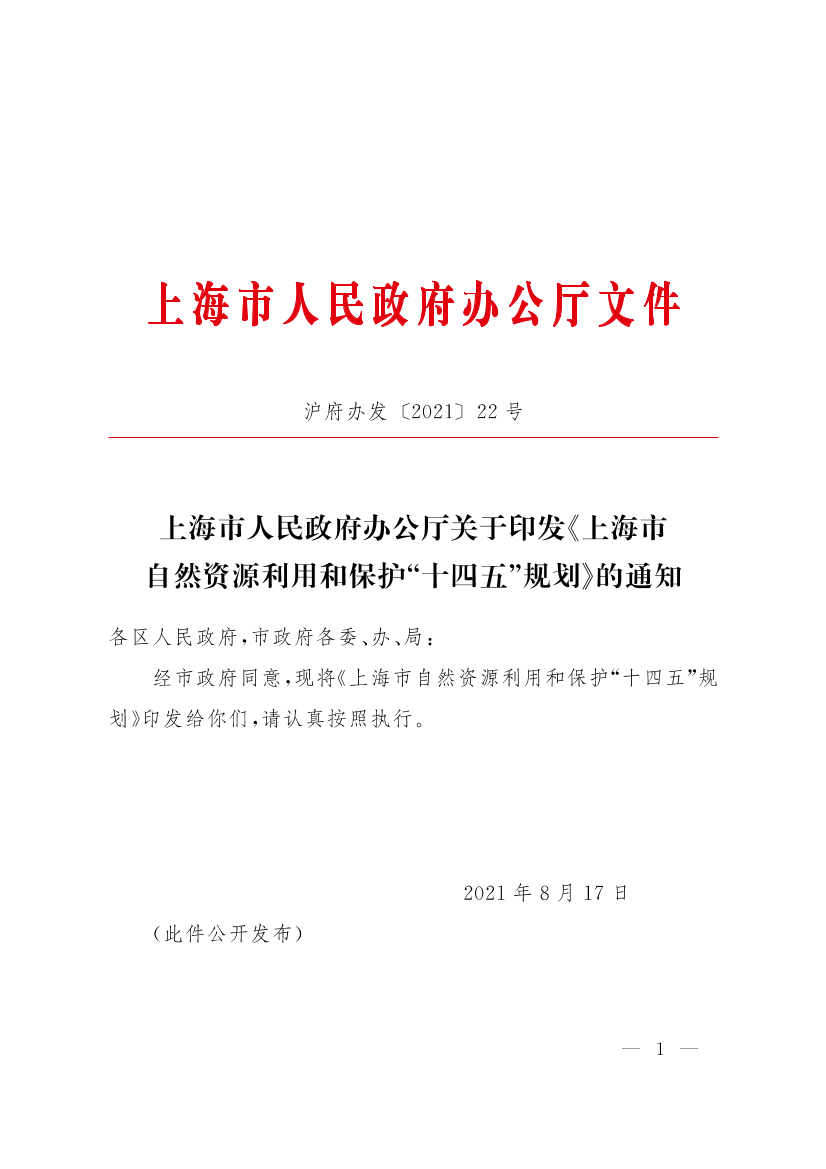 ??經(jīng)市政府同意,現(xiàn)將《上海市自然資源利用和保護(hù)“十四五”規(guī)劃》印發(fā)給你們,請(qǐng)認(rèn)真按照?qǐng)?zhí)行。