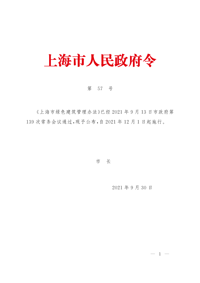 (2021年9月30日上海市人民政府令第57號公布)