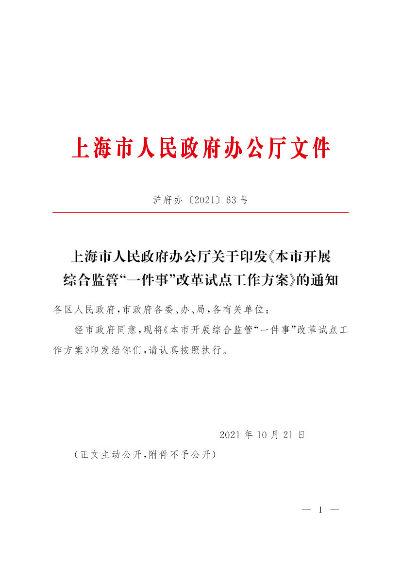 上海市人民政府辦公廳關(guān)于印發(fā)《本市開展綜合監(jiān)管“一件事”改革試點工作方案》的通知