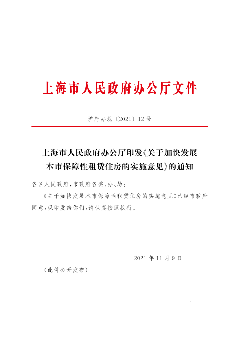 上海市人民政府辦公廳印發(fā)《關(guān)于加快發(fā)展本市保障性租賃住房的實(shí)施意見(jiàn)》的通知