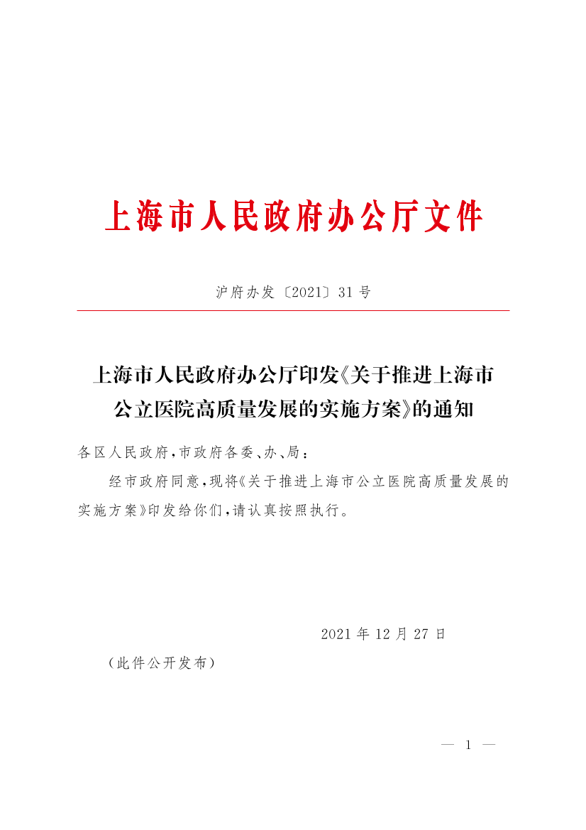 ??經(jīng)市政府同意,現(xiàn)將《關(guān)于推進上海市公立醫(yī)院高質(zhì)量發(fā)展的實施方案》印發(fā)給你們,請認真按照執(zhí)行。