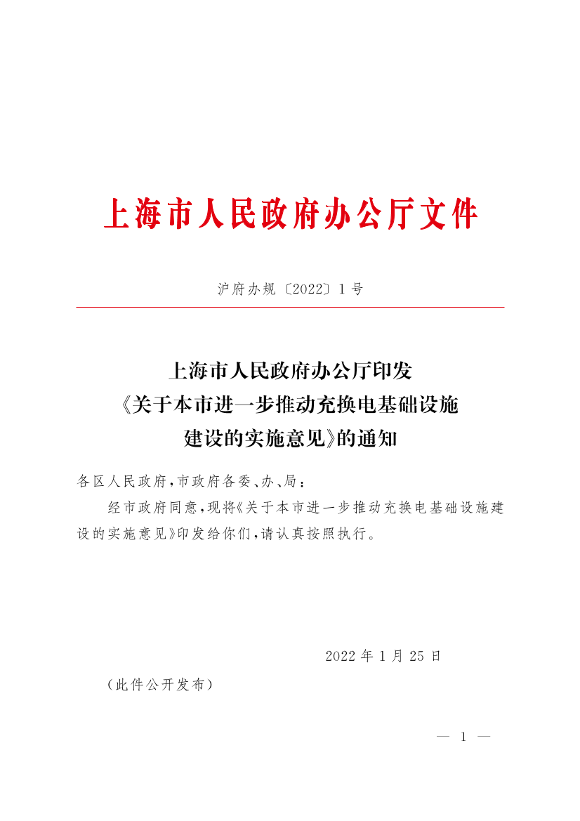 上海市人民政府辦公廳印發(fā)《關(guān)于本市進(jìn)一步推動充換電基礎(chǔ)設(shè)施建設(shè)的實施意見》的通知
