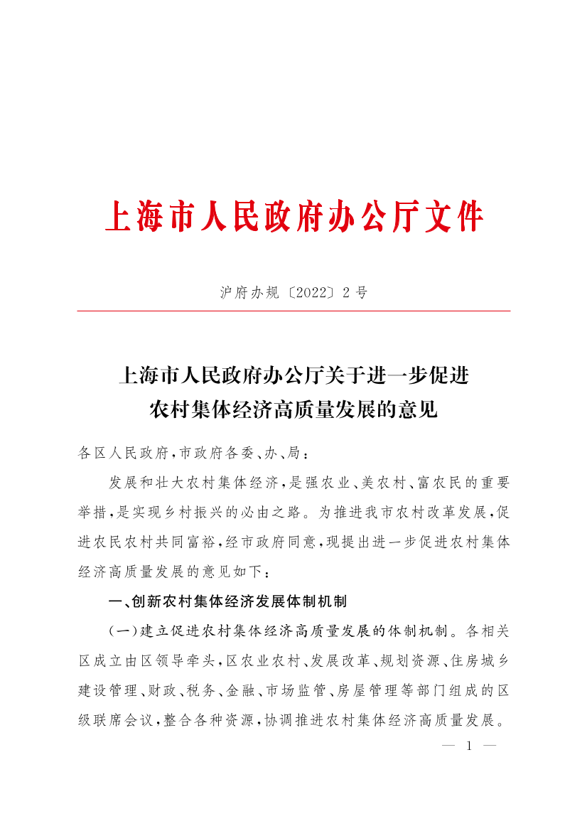 上海市人民政府辦公廳關(guān)于進(jìn)一步促進(jìn)農(nóng)村集體經(jīng)濟(jì)高質(zhì)量發(fā)展的意見
