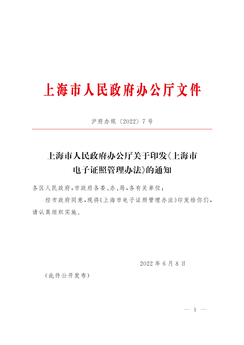 上海市人民政府辦公廳關(guān)于印發(fā)《上海市電子證照管理辦法》的通知