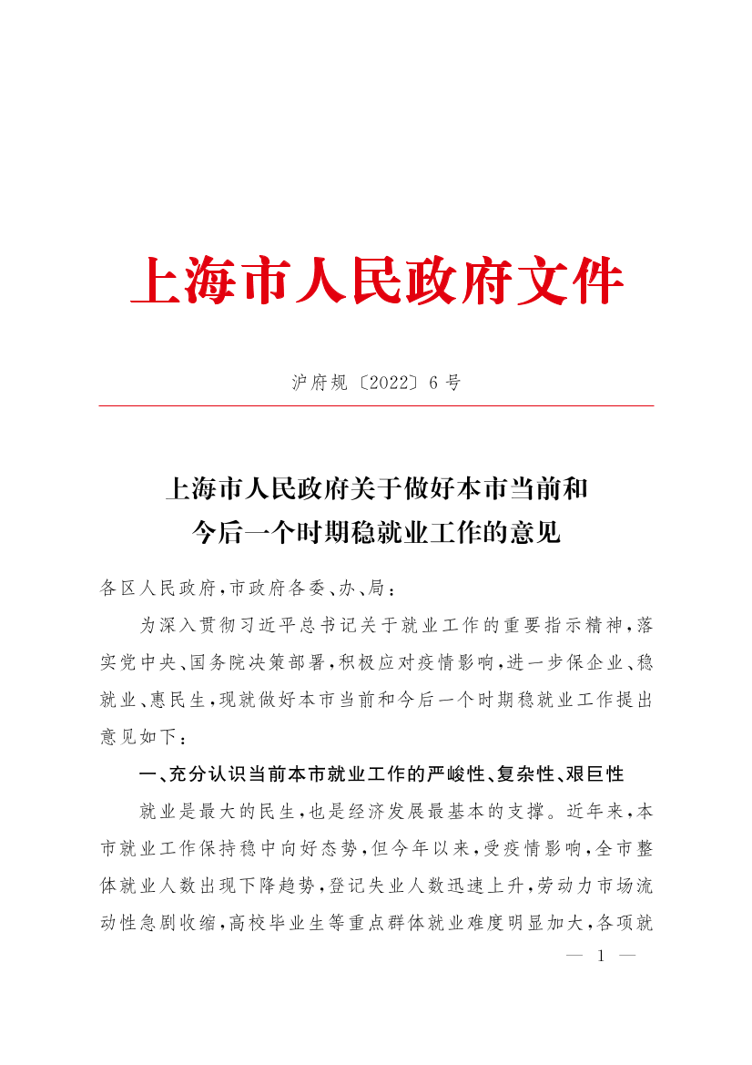 ??為深入貫徹習近平總書記關于就業(yè)工作的重要指示精神,落實黨中央、國務院決策部署,積極應對疫情影響,進一步保企業(yè)、穩(wěn)就業(yè)、惠民生,現就做好本市當前和今后一個時期穩(wěn)就業(yè)工作提出意見如下: