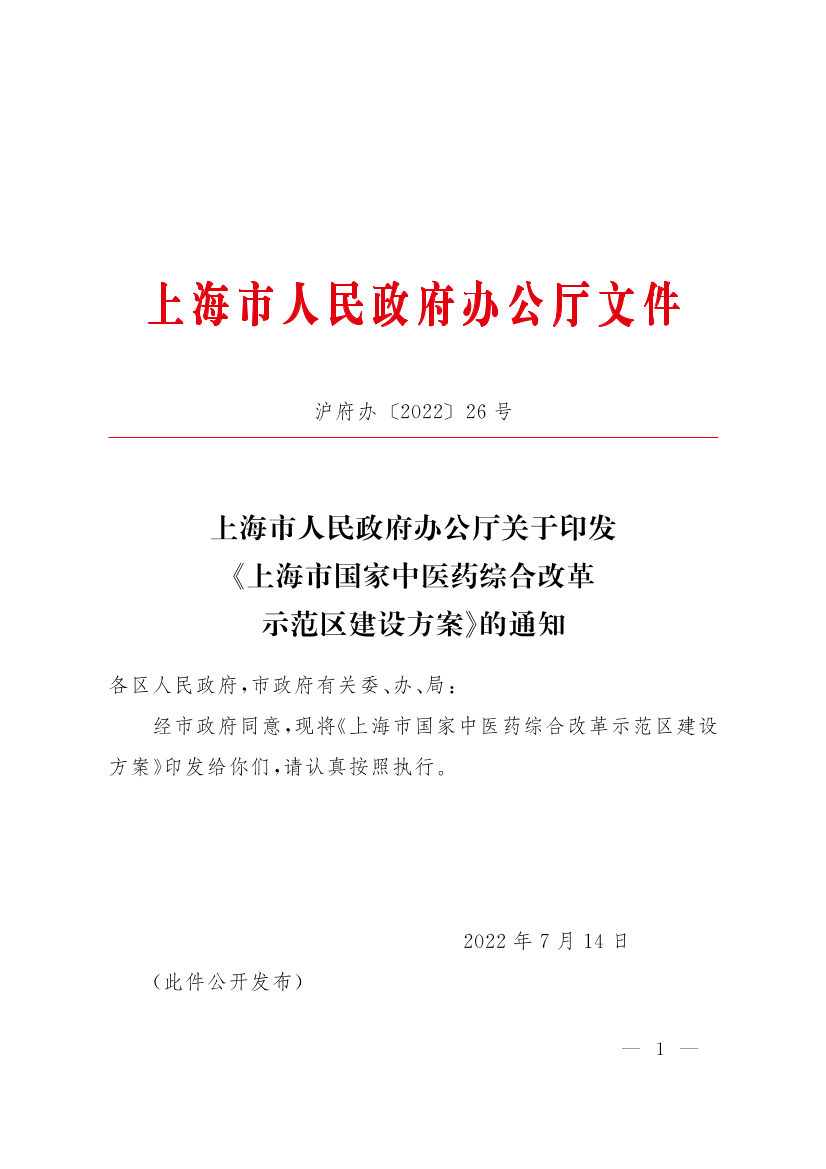 上海市人民政府辦公廳關(guān)于印發(fā)《上海市國家中醫(yī)藥綜合改革示范區(qū)建設(shè)方案》的通知