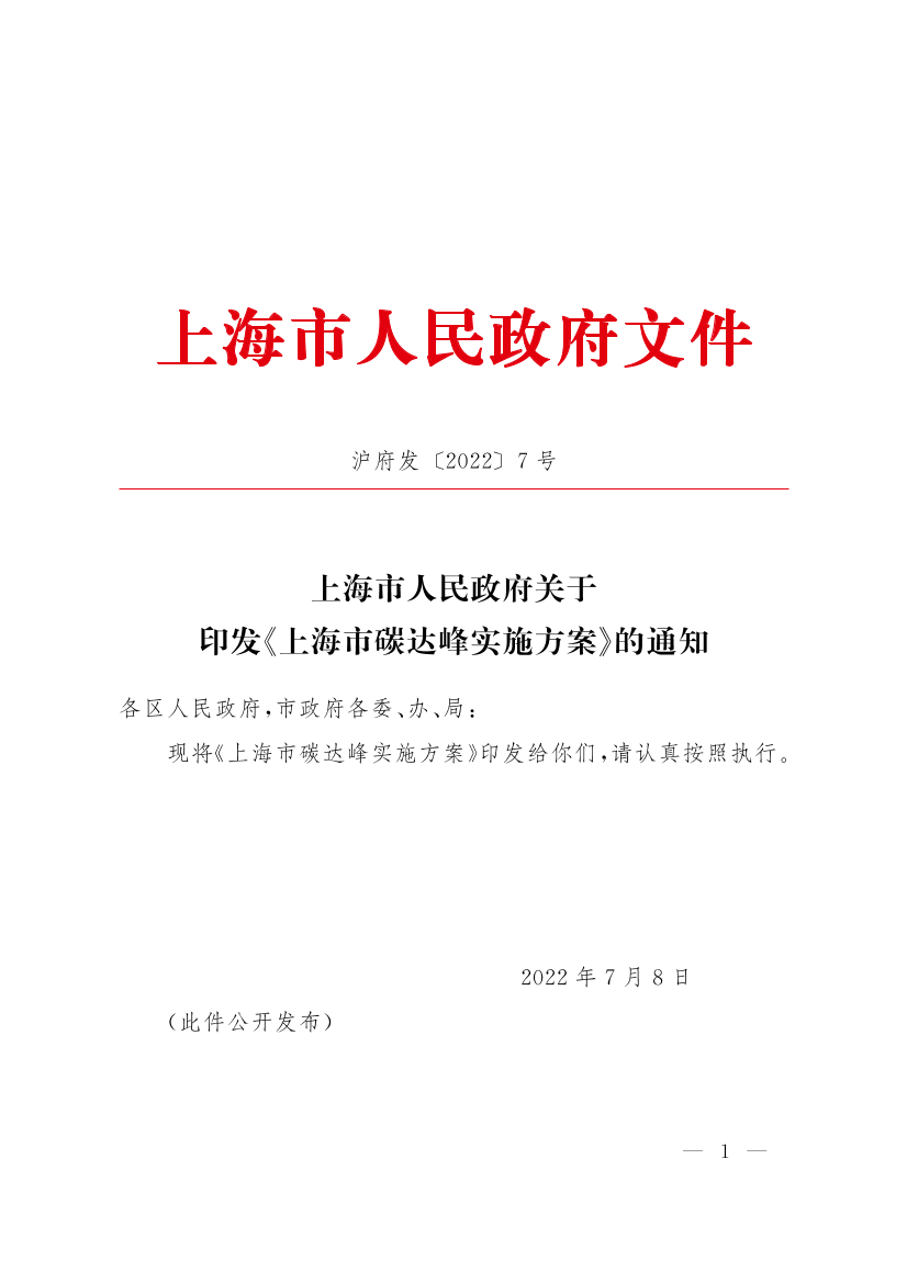 上海市人民政府關(guān)于印發(fā)《上海市碳達(dá)峰實(shí)施方案》的通知