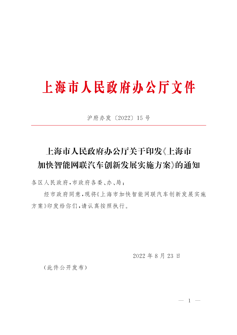 ??經(jīng)市政府同意,現(xiàn)將《上海市加快智能網(wǎng)聯(lián)汽車創(chuàng)新發(fā)展實(shí)施方案》印發(fā)給你們,請(qǐng)認(rèn)真按照?qǐng)?zhí)行。
