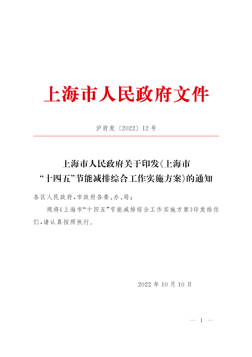 上海市人民政府關(guān)于印發(fā)《上海市“十四五”節(jié)能減排綜合工作實(shí)施方案》的通知