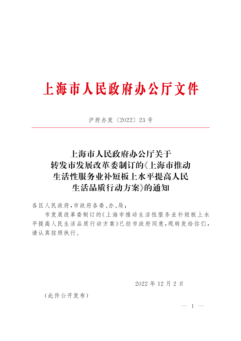 ??市發(fā)展改革委制訂的《上海市推動生活性服務(wù)業(yè)補短板上水平提高人民生活品質(zhì)行動方案》已經(jīng)市政府同意,現(xiàn)轉(zhuǎn)發(fā)給你們,請認真按照執(zhí)行。
