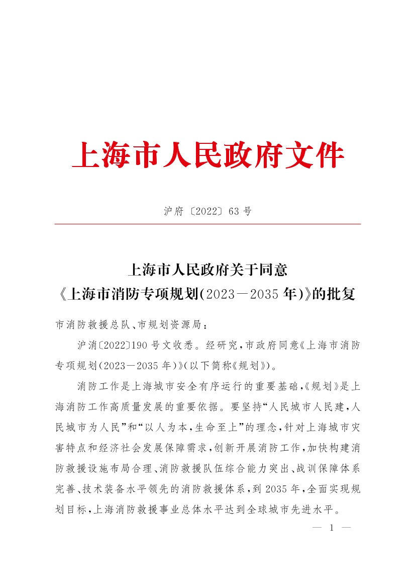 上海市人民政府關(guān)于同意《上海市消防專項規(guī)劃(2023-2035年)》的批復(fù)