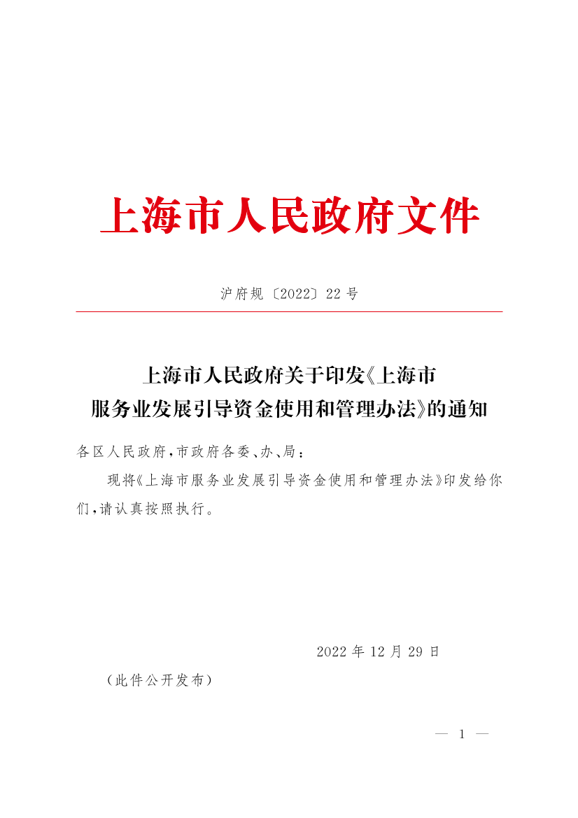 上海市人民政府關(guān)于印發(fā)《上海市服務(wù)業(yè)發(fā)展引導(dǎo)資金使用和管理辦法》的通知