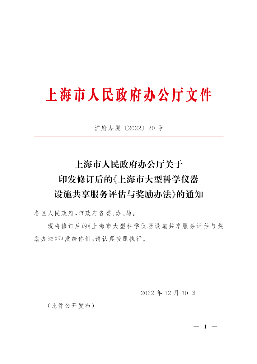 上海市人民政府辦公廳關(guān)于印發(fā)修訂后的《上海市大型科學(xué)儀器設(shè)施共享服務(wù)評(píng)估與獎(jiǎng)勵(lì)辦法》的通知