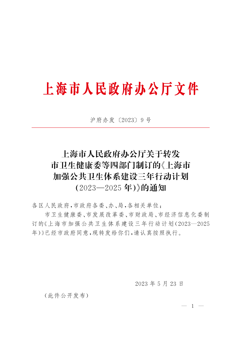 上海市加強(qiáng)公共衛(wèi)生體系建設(shè)三年行動計(jì)劃(2023-2025年)