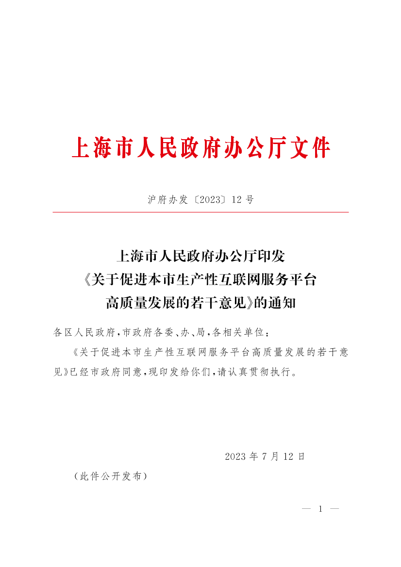上海市人民政府辦公廳印發(fā)《關(guān)于促進(jìn)本市生產(chǎn)性互聯(lián)網(wǎng)服務(wù)平臺(tái)高質(zhì)量發(fā)展的若干意見(jiàn)》的通知