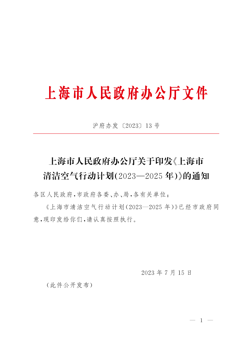 上海市人民政府辦公廳關(guān)于印發(fā)《上海市清潔空氣行動(dòng)計(jì)劃(2023—2025年)》的通知