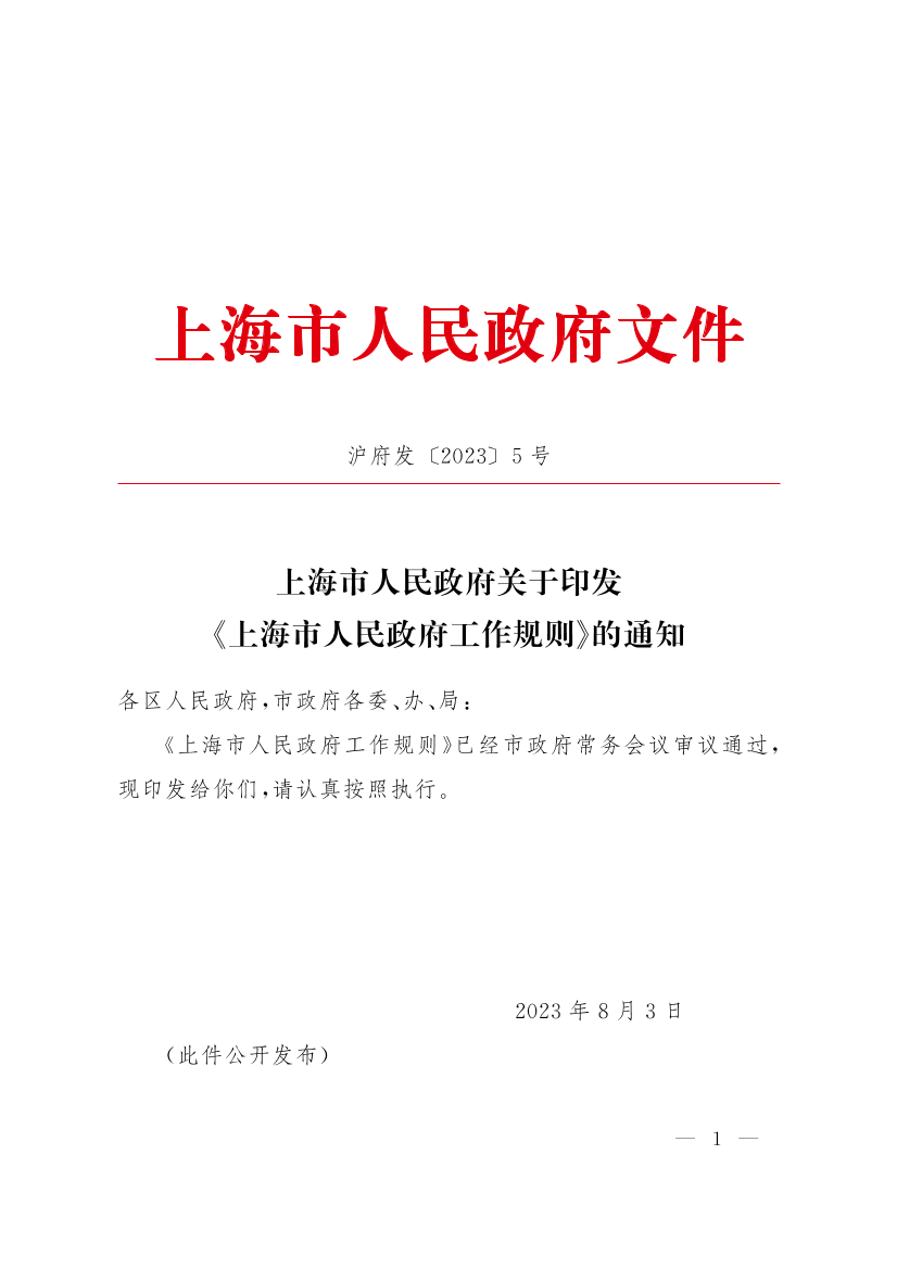 ??四十九、本規(guī)則自2023年8月3日起施行。2018年9月市政府印發(fā)的《上海市人民政府工作規(guī)則》停止執(zhí)行。