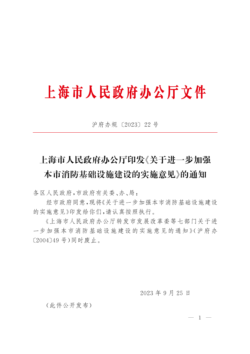 ??《上海市人民政府辦公廳轉(zhuǎn)發(fā)市發(fā)展改革委等七部門關于進一步加強本市消防基礎設施建設的實施意見的通知》(滬府辦〔2004〕49號)同時廢止。