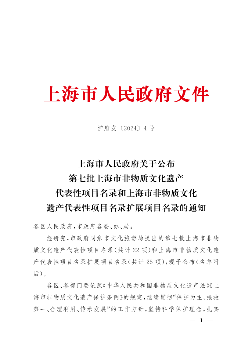 上海市人民政府關(guān)于公布第七批上海市非物質(zhì)文化遺產(chǎn)代表性項(xiàng)目名錄和上海市非物質(zhì)文化遺產(chǎn)代表性項(xiàng)目名錄擴(kuò)展項(xiàng)目名錄的通知