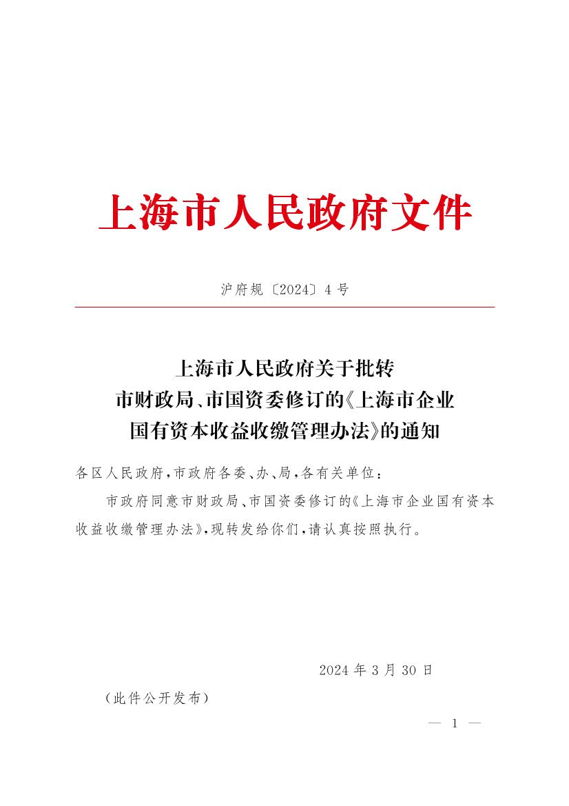 ??市政府同意市財政局、市國資委修訂的《上海市企業(yè)國有資本收益收繳管理辦法》,現(xiàn)轉(zhuǎn)發(fā)給你們,請認真按照執(zhí)行。
