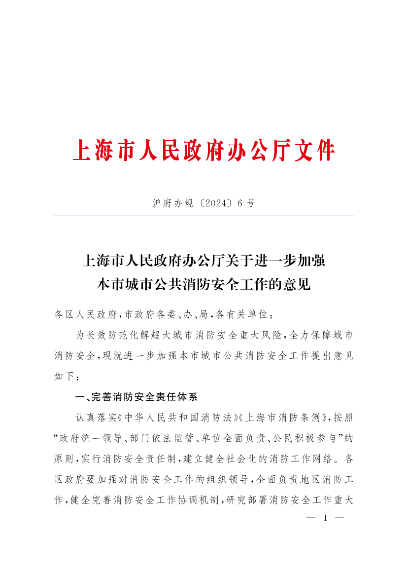 ??為長(zhǎng)效防范化解超大城市消防安全重大風(fēng)險(xiǎn),全力保障城市消防安全,現(xiàn)就進(jìn)一步加強(qiáng)本市城市公共消防安全工作提出意見如下: