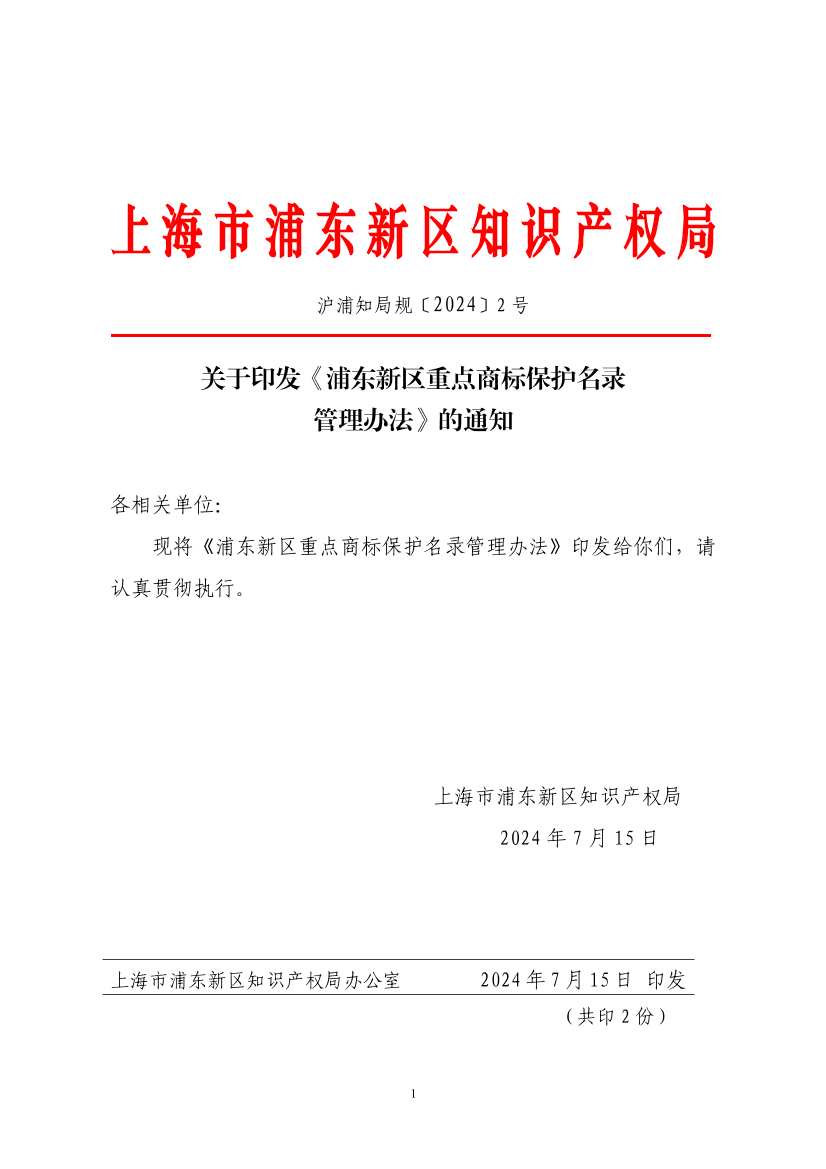 關于印發(fā)《浦東新區(qū)重點商標保護名錄管理辦法》的通知