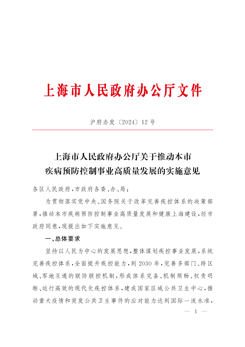 上海市人民政府辦公廳關(guān)于推動(dòng)本市疾病預(yù)防控制事業(yè)高質(zhì)量發(fā)展的實(shí)施意見