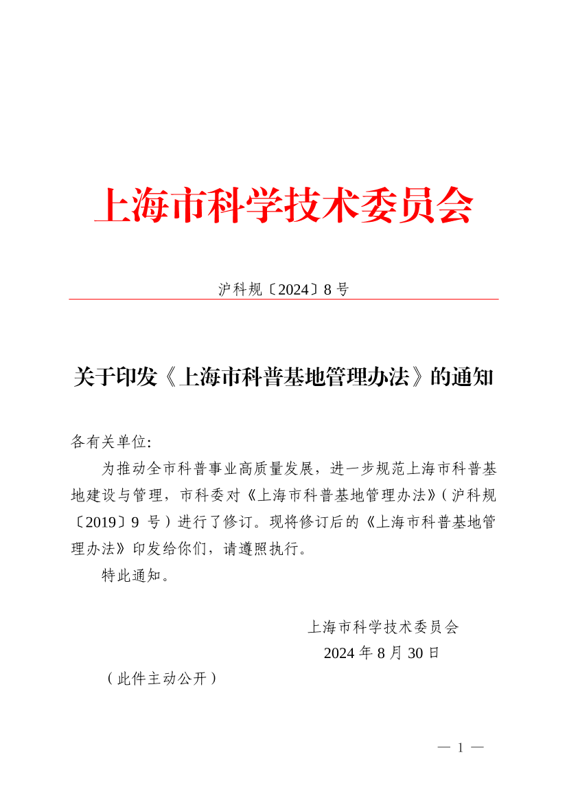 關(guān)于印發(fā)《上海市科普基地管理辦法》的通知