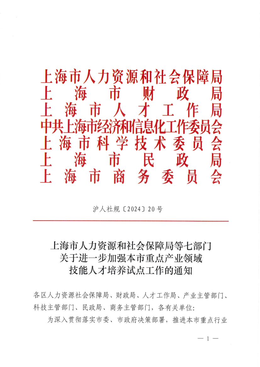 關(guān)于進(jìn)一步加強(qiáng)本市重點(diǎn)產(chǎn)業(yè)領(lǐng)域技能人才培養(yǎng)試點(diǎn)工作的通知