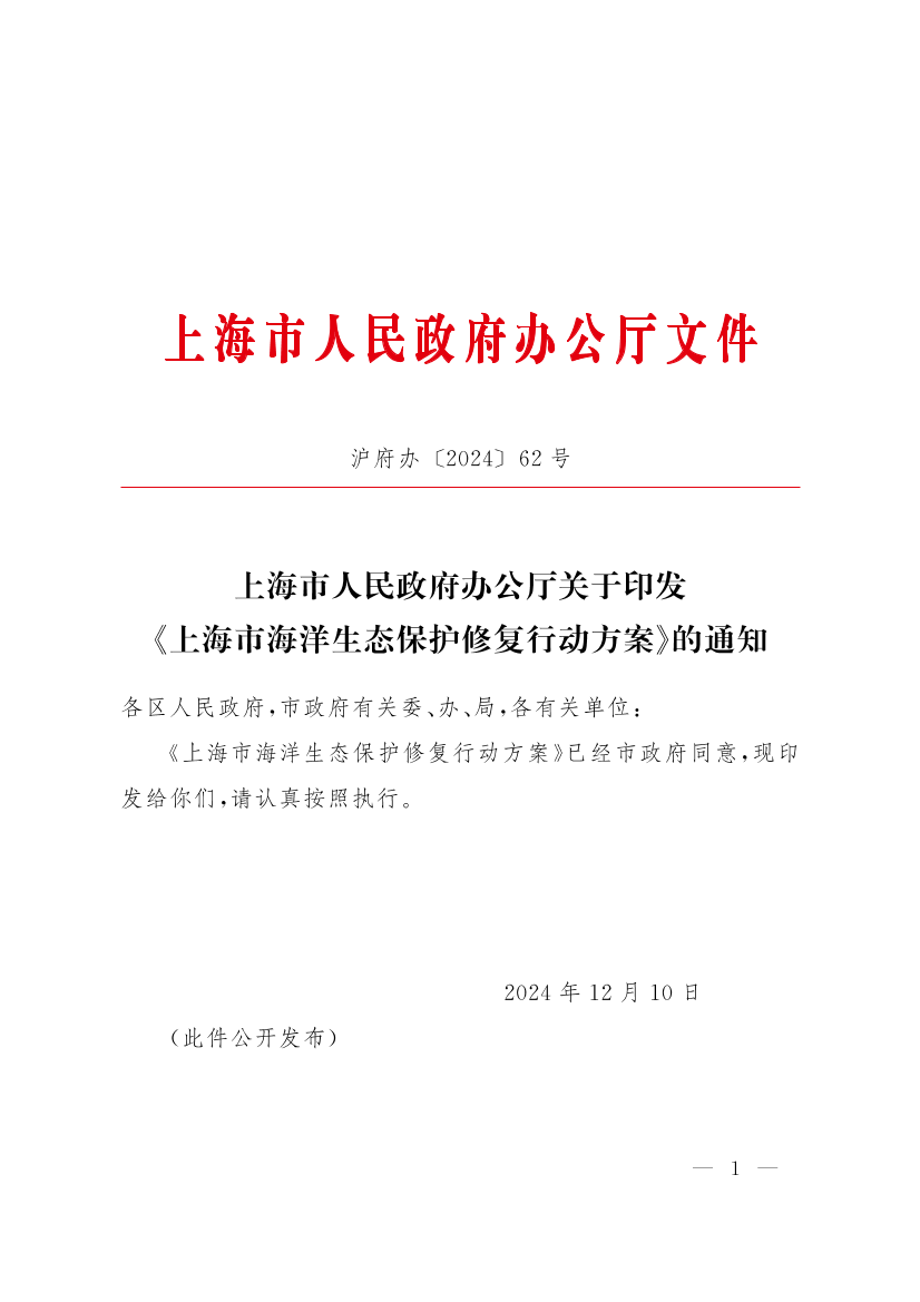 ??《上海市海洋生態(tài)保護(hù)修復(fù)行動(dòng)方案》已經(jīng)市政府同意,現(xiàn)印發(fā)給你們,請(qǐng)認(rèn)真按照?qǐng)?zhí)行。