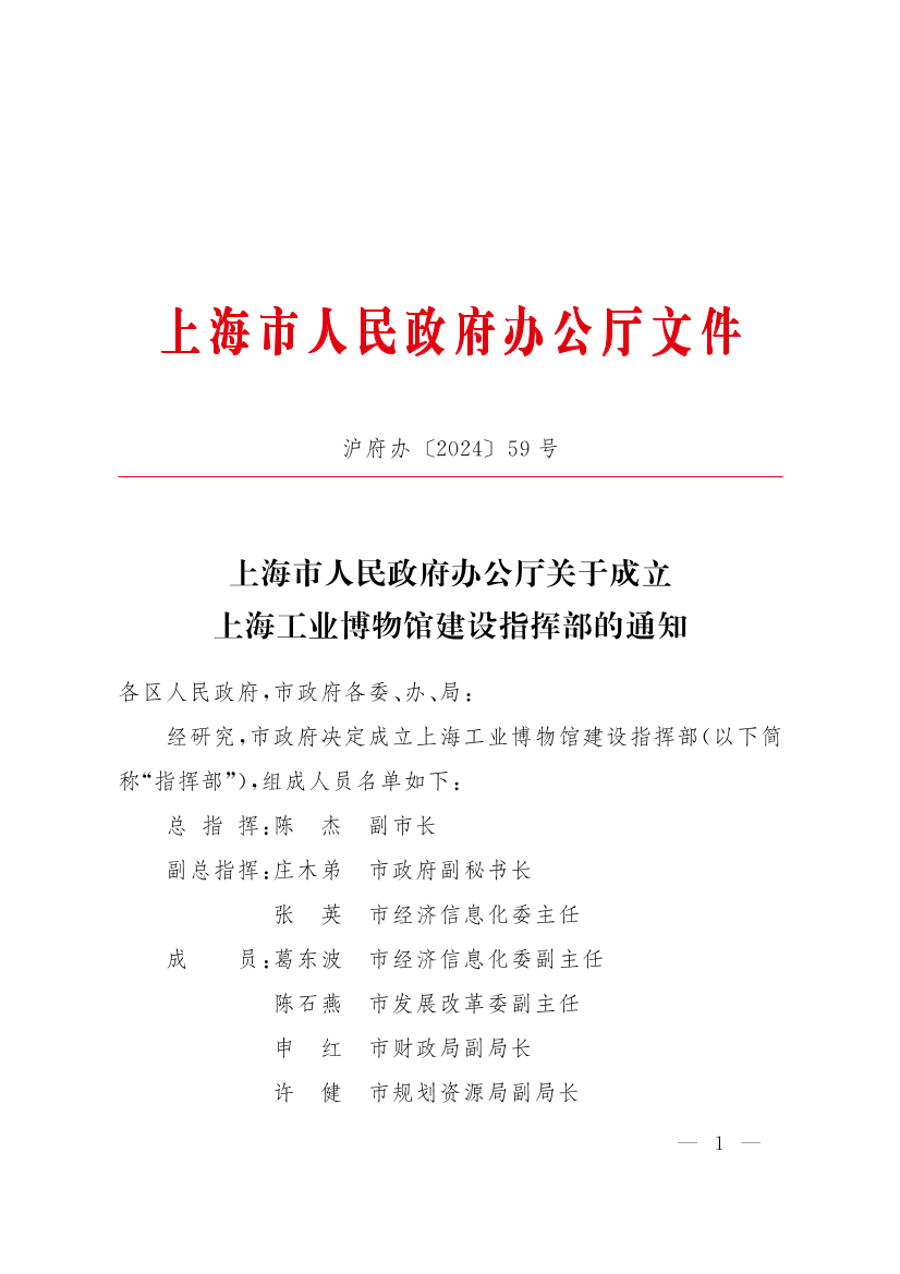 ??經(jīng)研究,市政府決定成立上海工業(yè)博物館建設(shè)指揮部(以下簡稱“指揮部”),組成人員名單如下:
