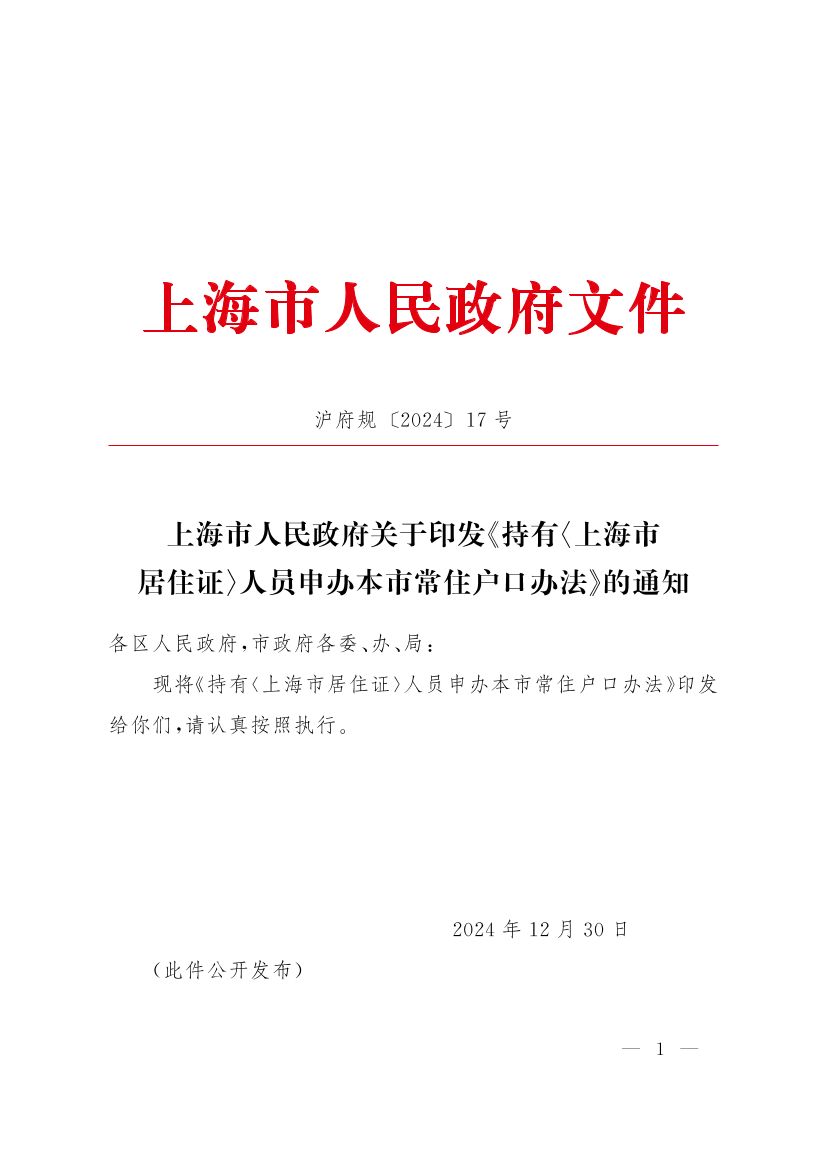 ??現(xiàn)將《持有〈上海市居住證〉人員申辦本市常住戶口辦法》印發(fā)給你們,請認(rèn)真按照執(zhí)行。