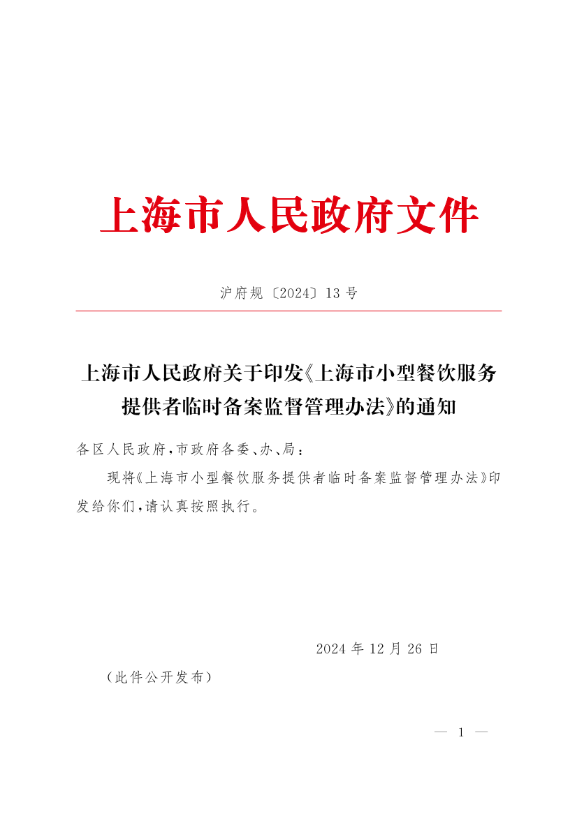 上海市人民政府關(guān)于印發(fā)《上海市小型餐飲服務(wù)提供者臨時(shí)備案監(jiān)督管理辦法》的通知