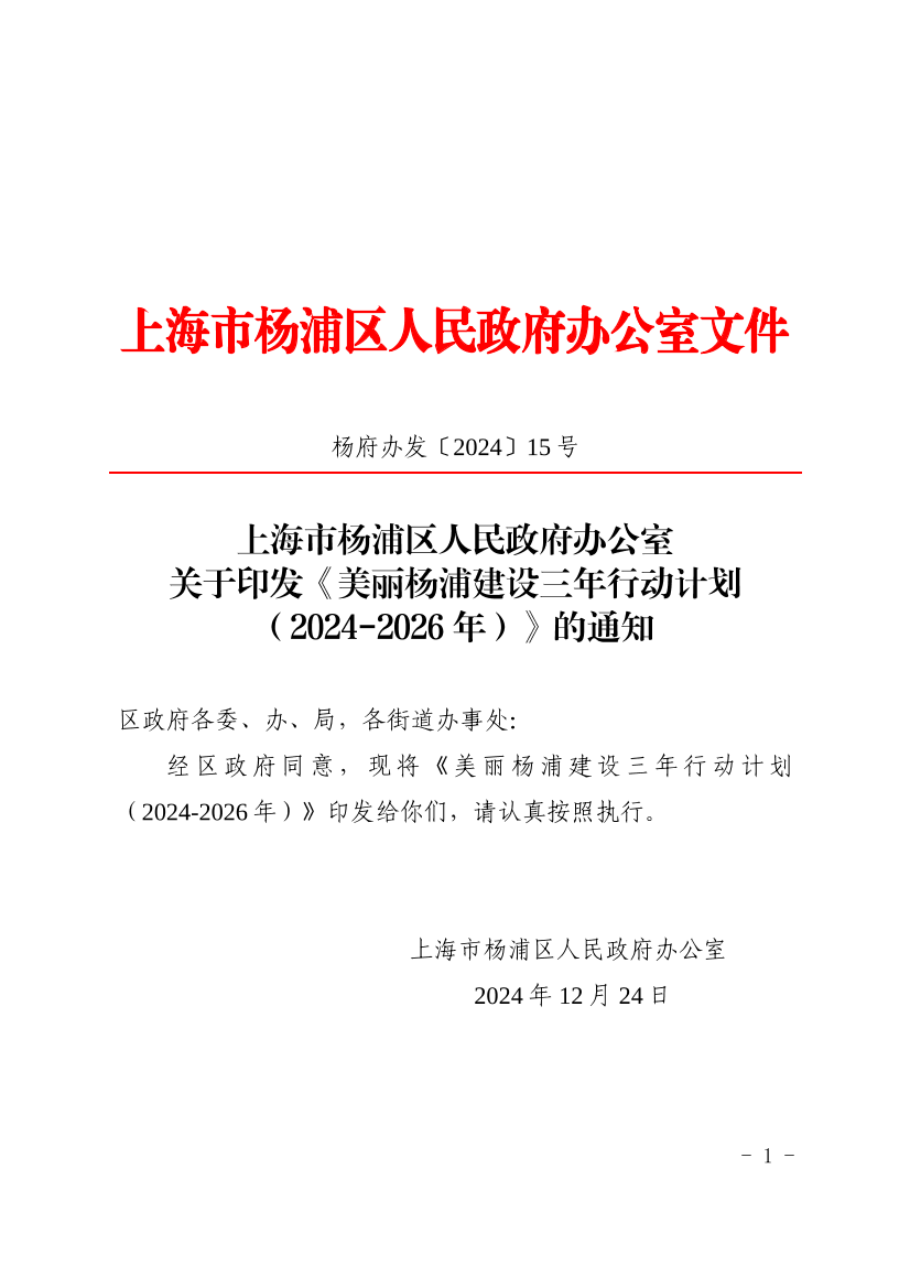 關(guān)于印發(fā)《美麗楊浦建設(shè)三年行動(dòng)計(jì)劃(2024-2026年)》的通知