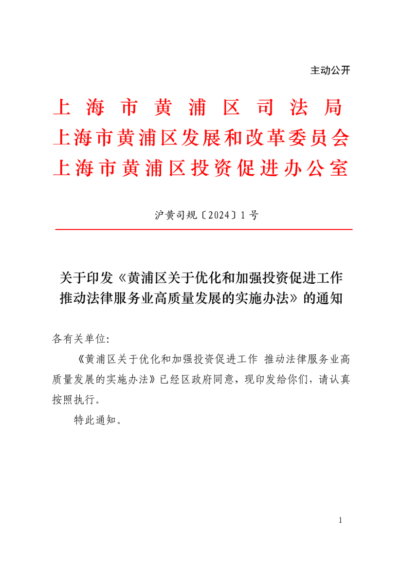 關(guān)于印發(fā)《黃浦區(qū)關(guān)于優(yōu)化和加強投資促進(jìn)工作 推動法律服務(wù)業(yè)高質(zhì)量發(fā)展的實施辦法》的通知