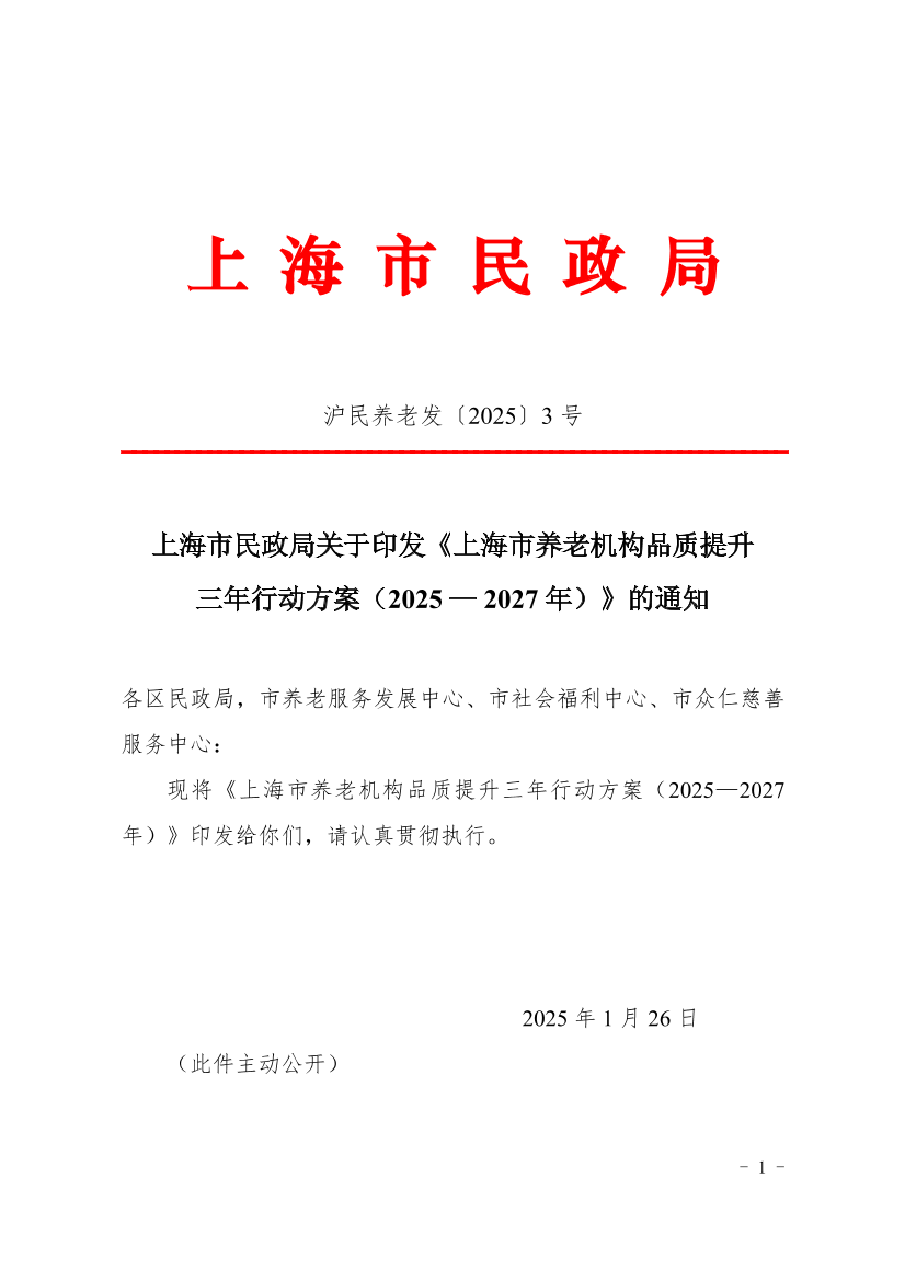 ??現(xiàn)將《上海市養(yǎng)老機(jī)構(gòu)品質(zhì)提升三年行動方案(2025—2027年)》印發(fā)給你們,請認(rèn)真貫徹執(zhí)行。
