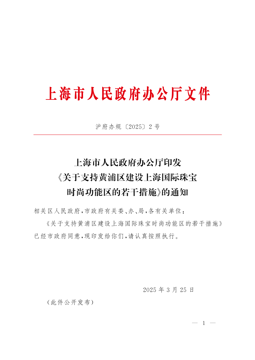 上海市人民政府辦公廳印發(fā)《關(guān)于支持黃浦區(qū)建設(shè)上海國際珠寶時(shí)尚功能區(qū)的若干措施》的通知