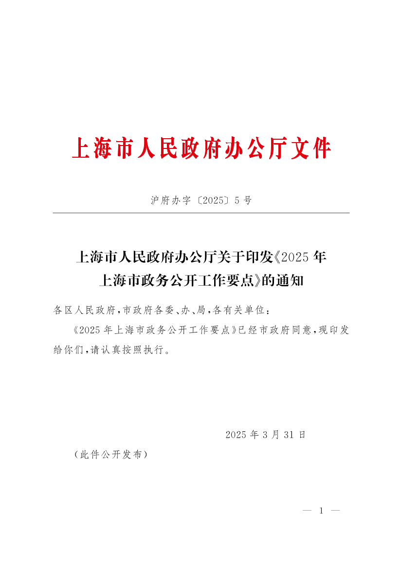 上海市人民政府辦公廳關(guān)于印發(fā)《2025年上海市政務(wù)公開工作要點(diǎn)》的通知