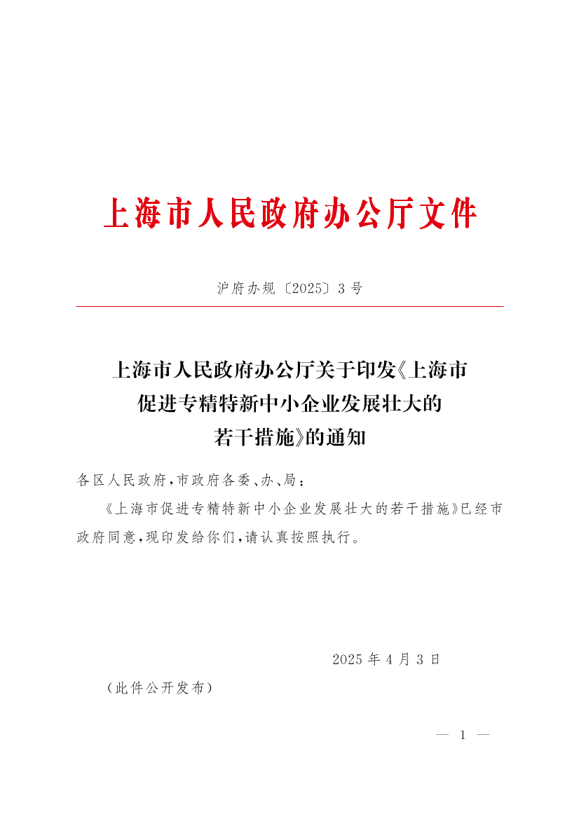 ??《上海市促進(jìn)專精特新中小企業(yè)發(fā)展壯大的若干措施》已經(jīng)市政府同意,現(xiàn)印發(fā)給你們,請認(rèn)真按照執(zhí)行。