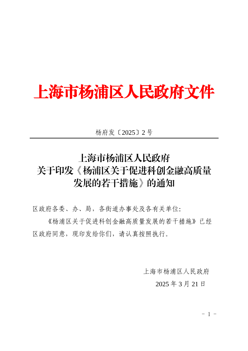 楊浦區(qū)關(guān)于促進科創(chuàng)金融高質(zhì)量發(fā)展的若干措施