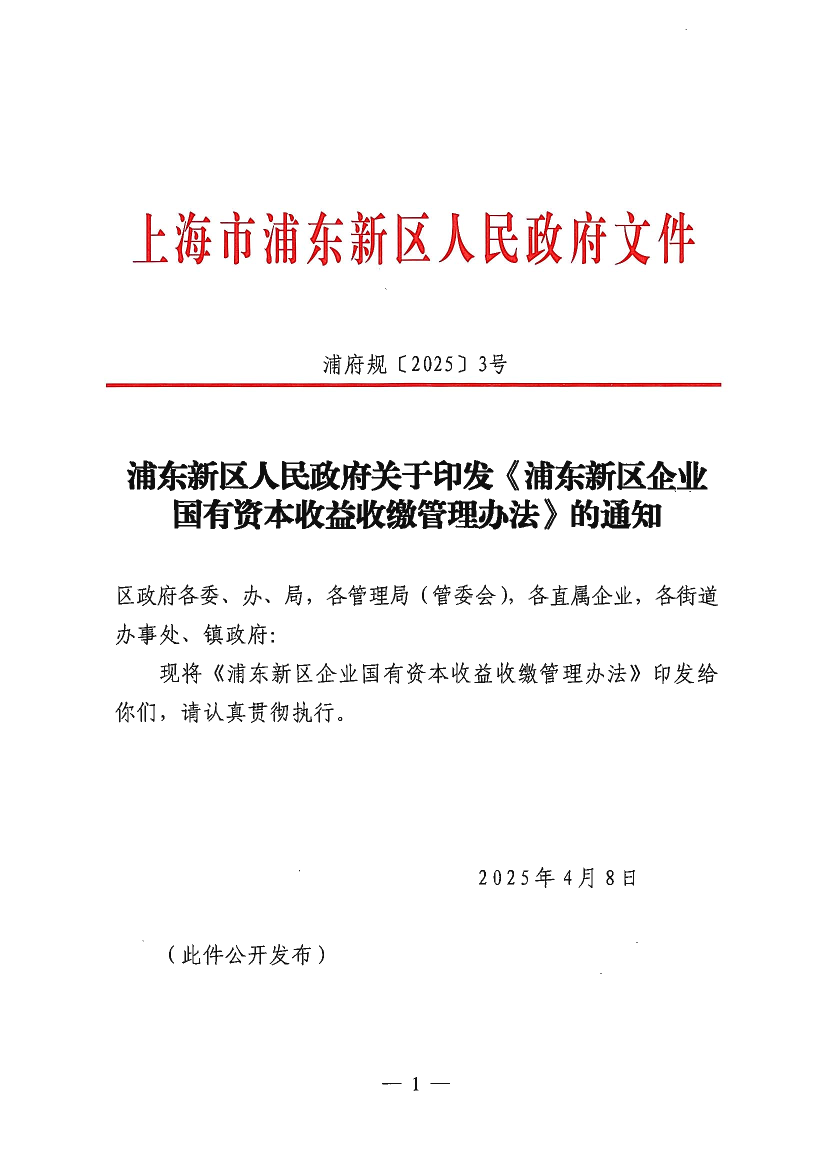 關(guān)于印發(fā)《浦東新區(qū)企業(yè)國有資本收益收繳管理辦法》的通知